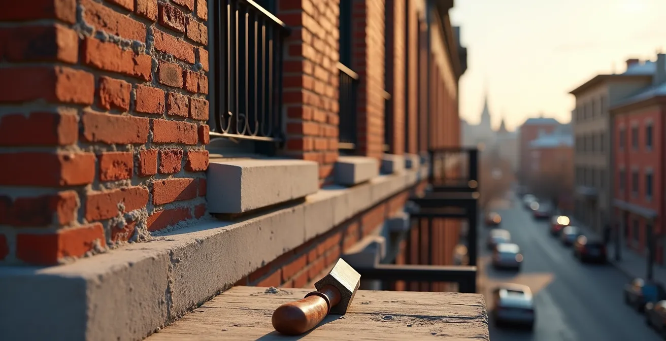 La découverte d’un renflement sur la façade de votre plex montréalais ou de votre demeure historique à Québec est une source d’angoisse légitime. Ce phénomène, que nous appelons un « ventre-de-bœuf », évoque immédiatement des images de murs qui s’écroulent et de factures astronomiques. La première réaction, bien souvent, est de craindre une démolition et une reconstruction complètes. C’est une vision qui a de quoi donner des sueurs froides à n’importe quel propriétaire soucieux de son patrimoine et de son portefeuille.